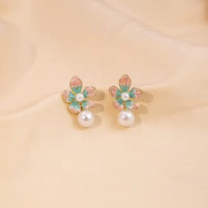 Trendy Bloom Camellia Pearl Earrings for everyday and party wear.