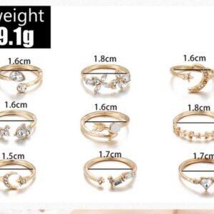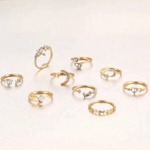 classic style star moon gold plated rhinestone ring set 9 pcs