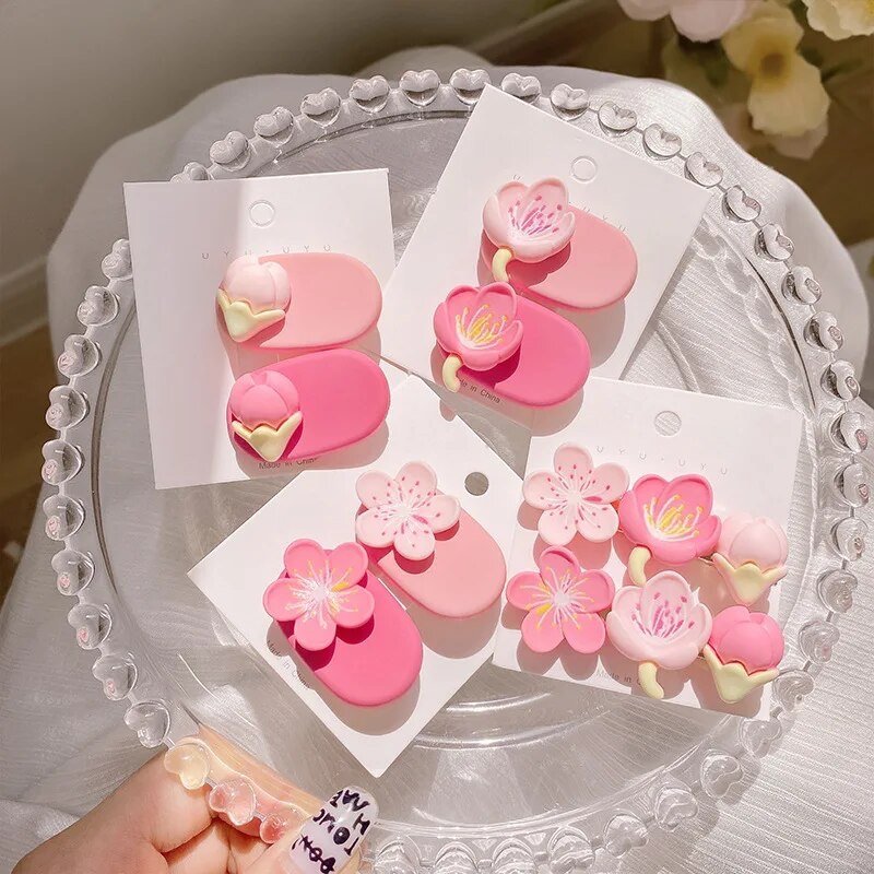 Cute Pink Blossom Hair Clips Set (2 pcs)