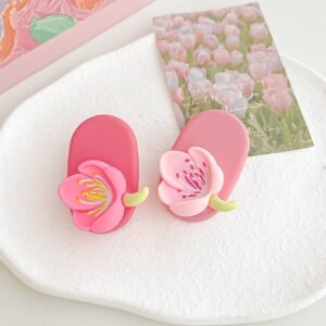 🌸 Cute Floral Design – Stylish blossom-shaped clips with soft pink tones.