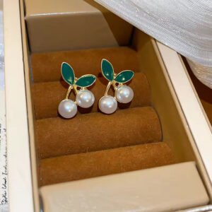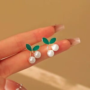 Elegant Pearl Cherry Leaf Stud Earrings — lightweight, stylish fashion jewelry to elevate your look. Perfect for gifting, daily wear, and special occasions.
