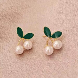 Trendy Elegant Pearl Cherry Leaf Stud Earrings for everyday and party wear.
