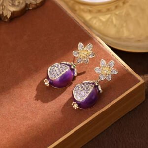 Elegant Vintage Purple Pomegranate Flower Earrings — lightweight, stylish fashion jewelry to elevate your look. Perfect for gifting, daily wear, and special occasions.