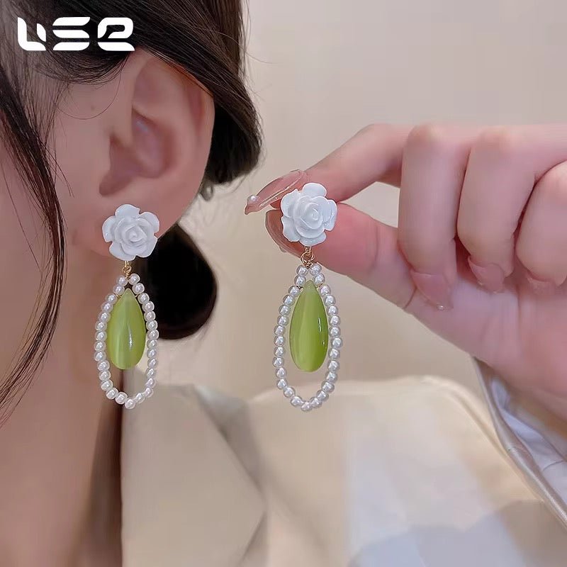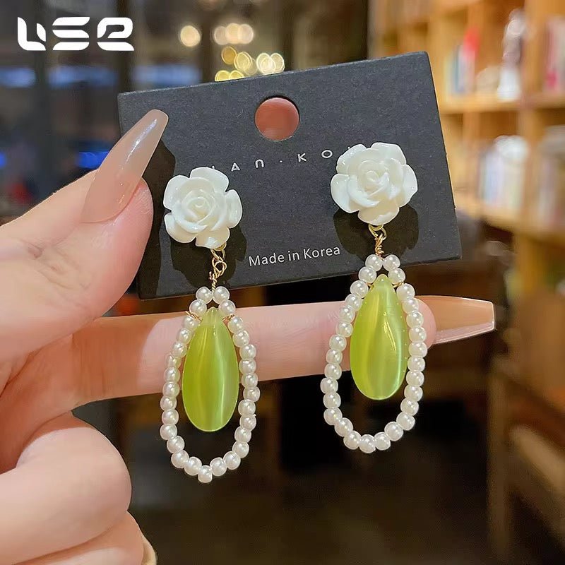 Green Flower Tassel Earrings — lightweight, stylish fashion jewelry to elevate your look. Perfect for gifting, daily wear, and special occasions.