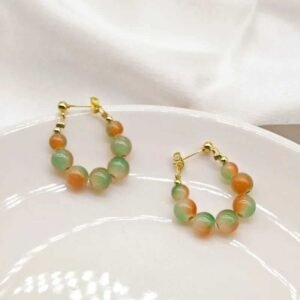 Be the first to review “Multicolor Frosted Beaded Hoop Earrings – Trendy Gold Plated Statement Jewelry for Women”