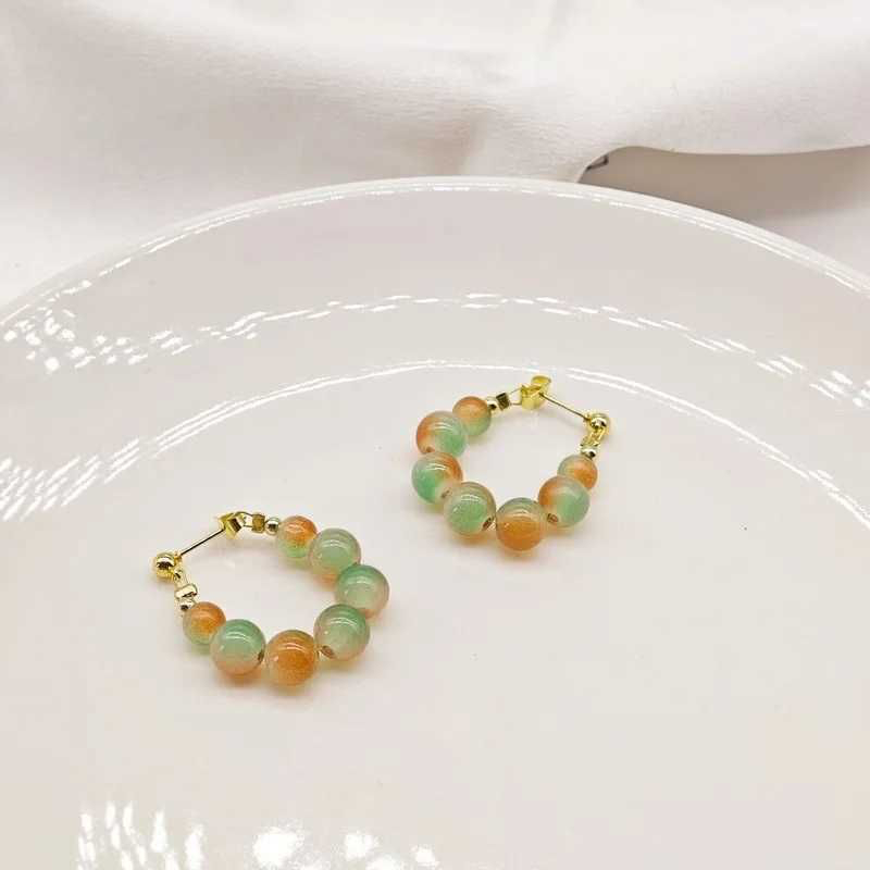 Multicolor Frosted Beaded Hoop Earrings – Trendy Gold Plated Statement Jewelry for Women