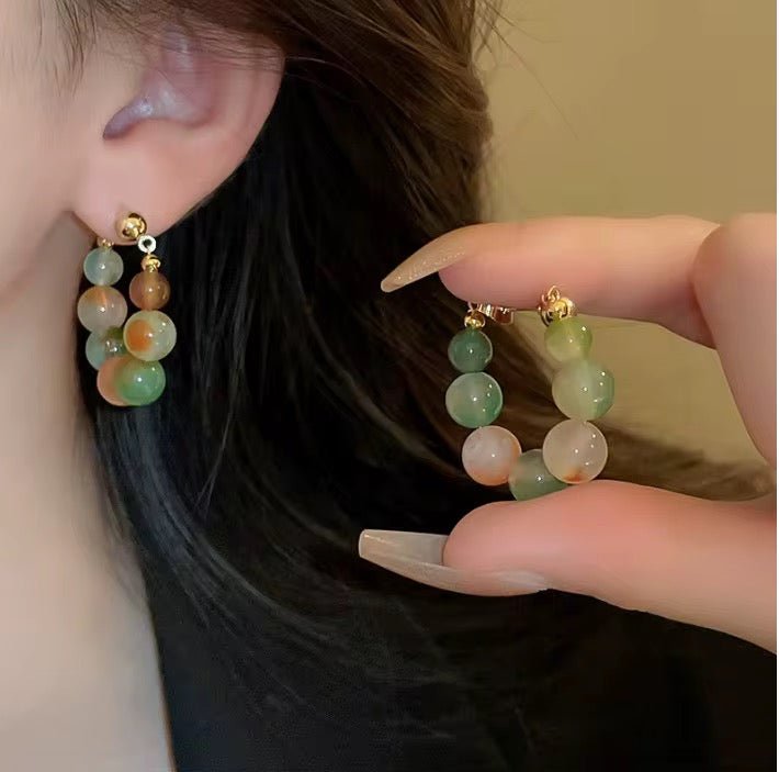 Add a soft pop of color to your style with these multicolor frosted beaded hoop earrings. Designed with pastel green and peach gradient beads, these lightweight hoops give a trendy yet elegant look for daily wear and special occasions.