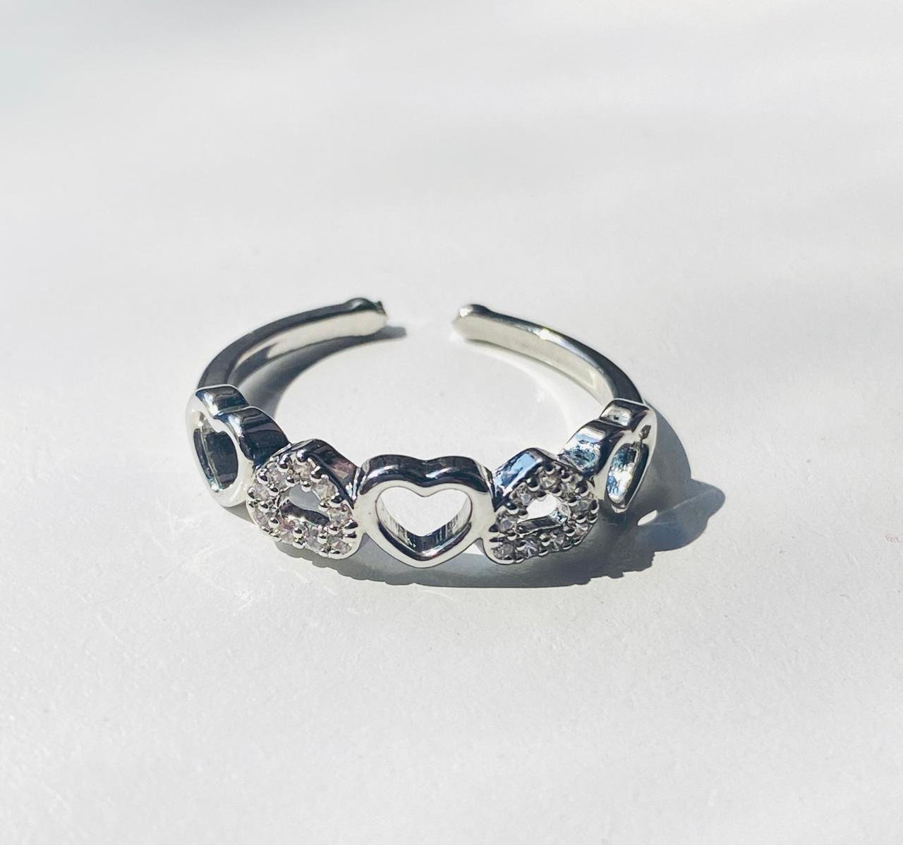 cute hearts rhinestone adjustable ring