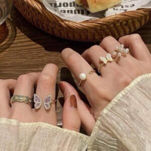 Cute Cross Heart Hollow Diamond Butterfly Ring Set 5 Pieces Earrings