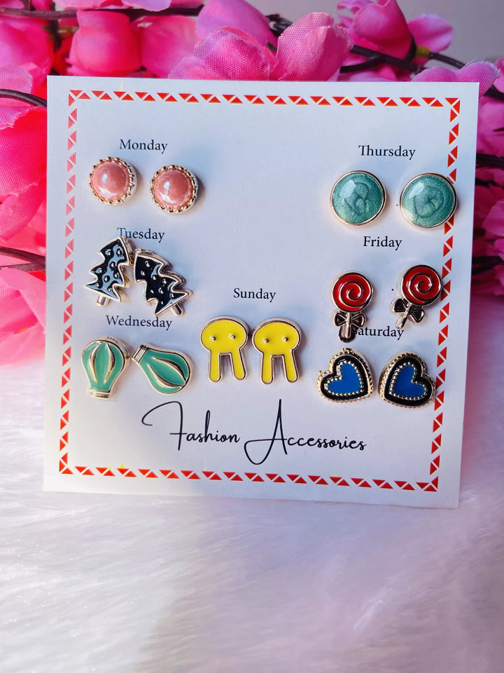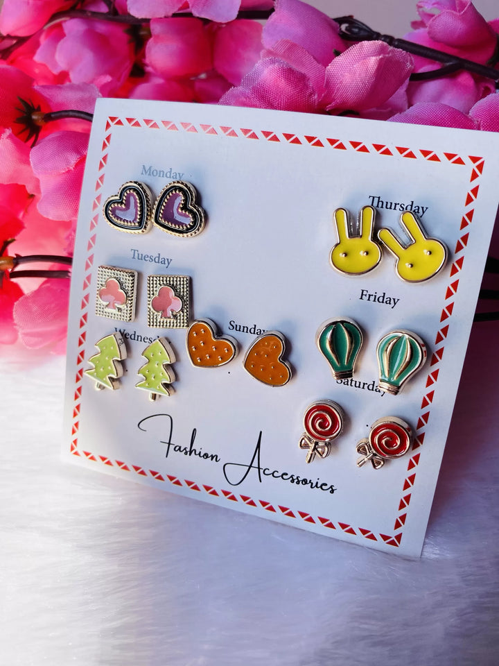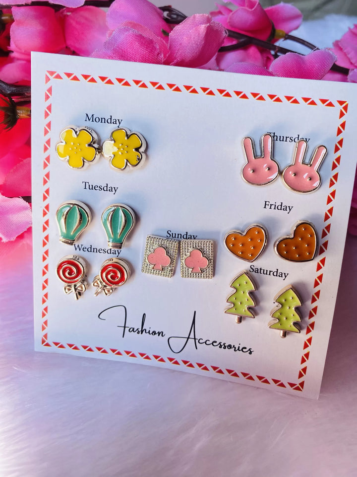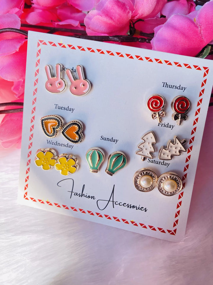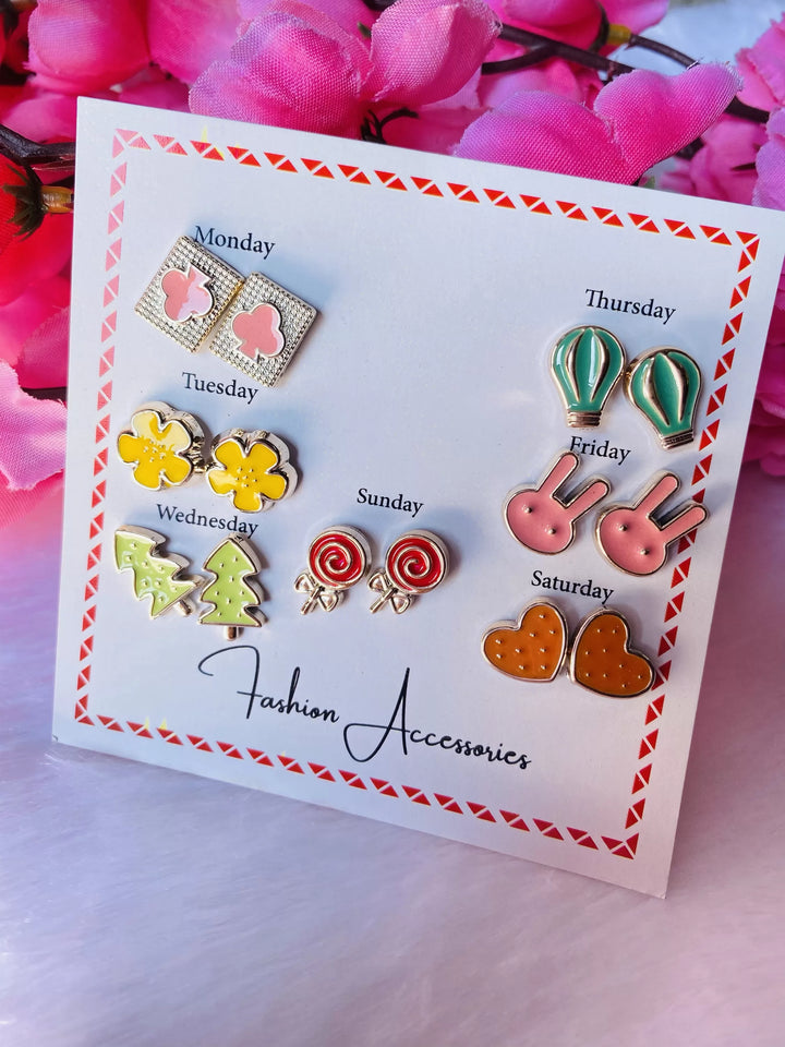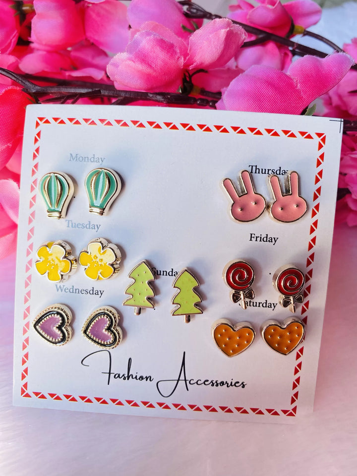 7 pair multicolour cute stud earrings