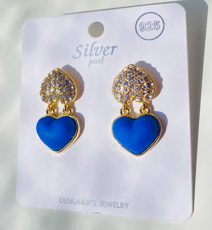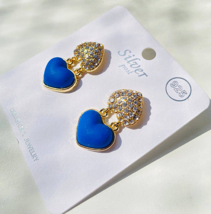 Blue heart with rhinestone earrings