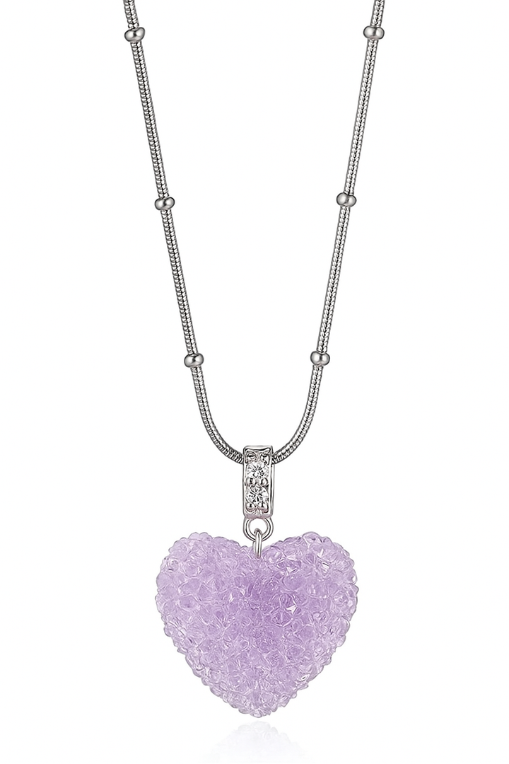 Crystal purple heart stainless steel necklace