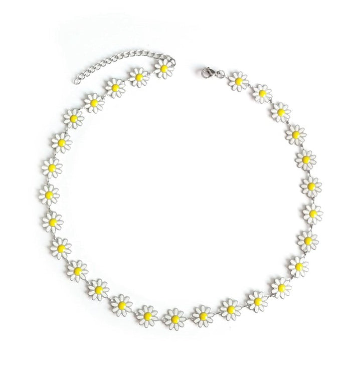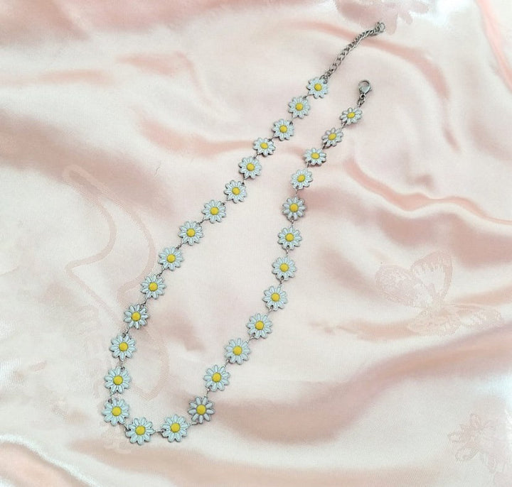 Cute Enamel silver plated White Daisy Flower Necklace