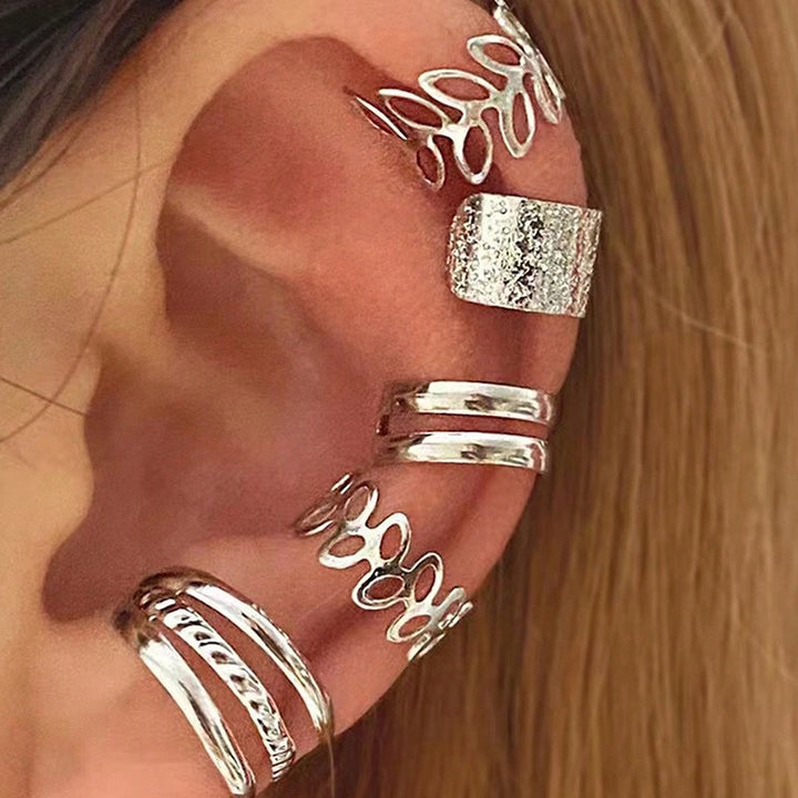 Elegant silver plated leaf hollow out alloy ear cuff( 5 pcs)