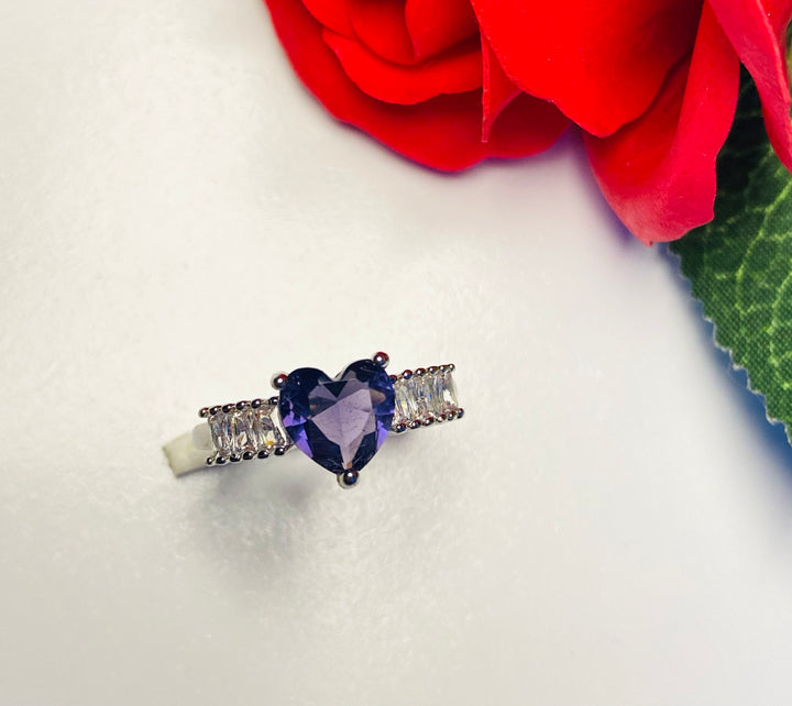 Esmeralda love heart Adjustable ring - purple