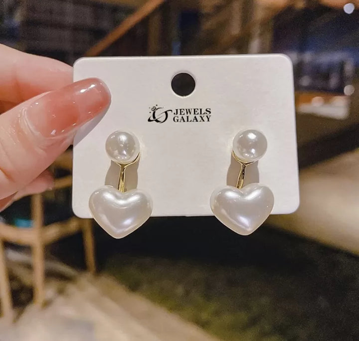 Gold Plated Korean Pearl Heart Beautiful Drop Earrings