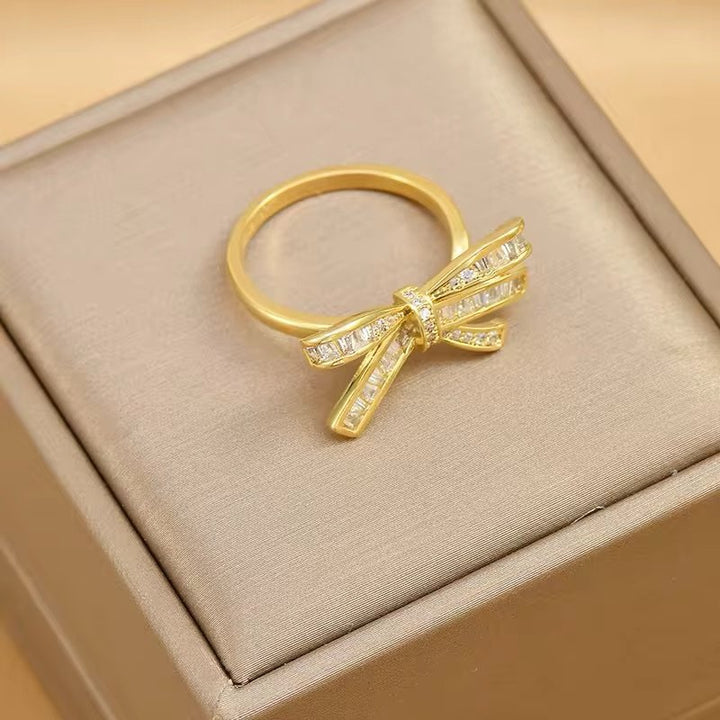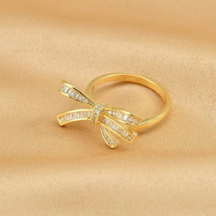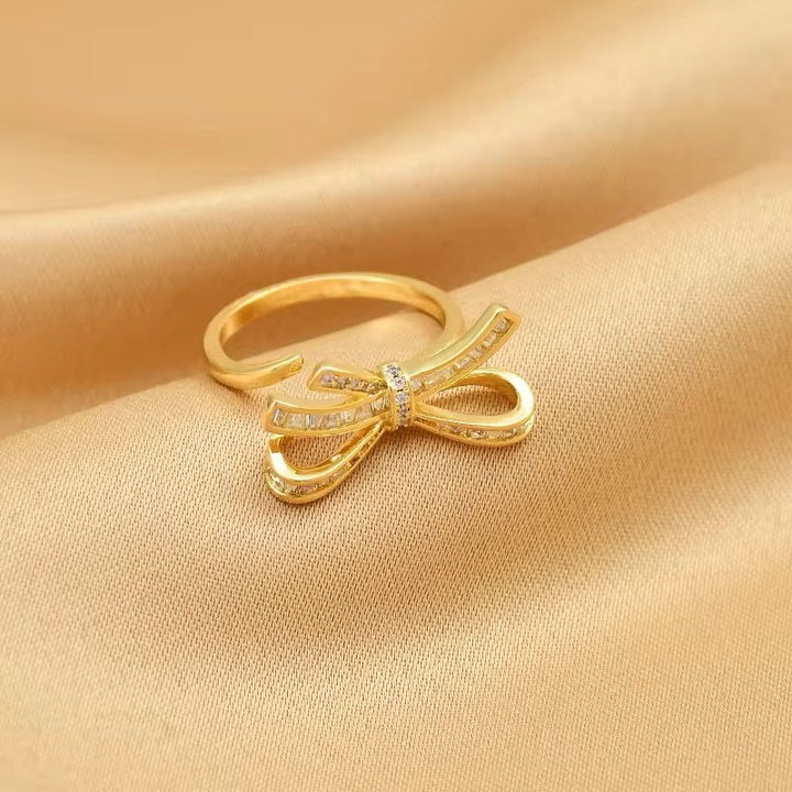 Golden bow knot adjustable ring