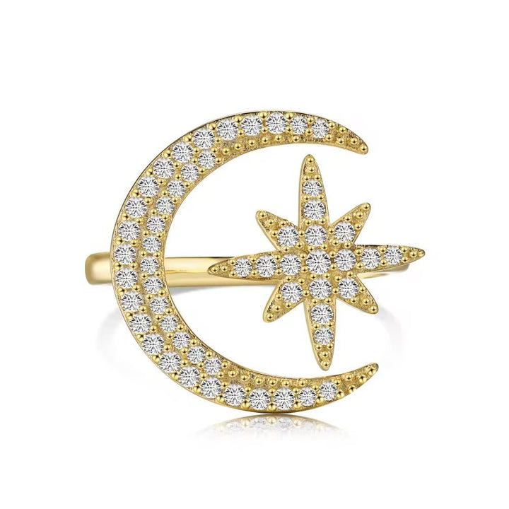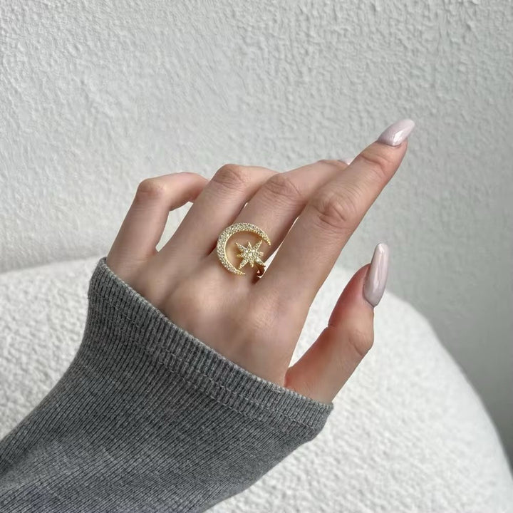 Golden star and moon ring