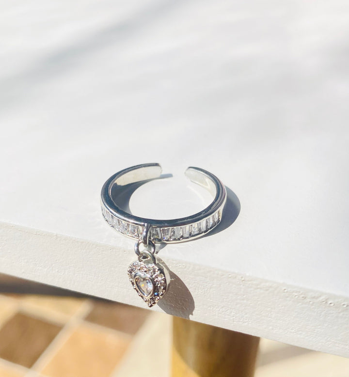 Hanging heart adjustable ring
