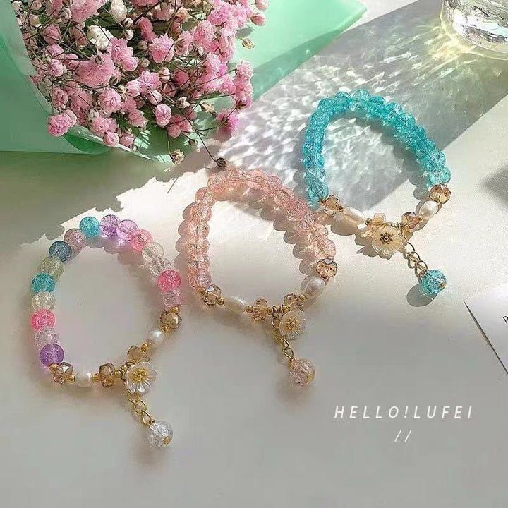 Korean style cute flower glass beaded pearl women’s bracelet