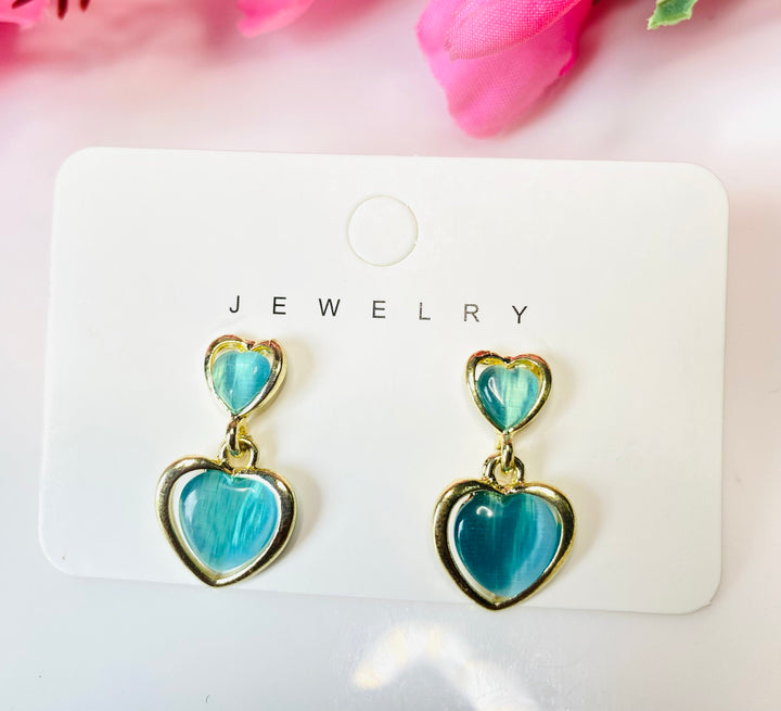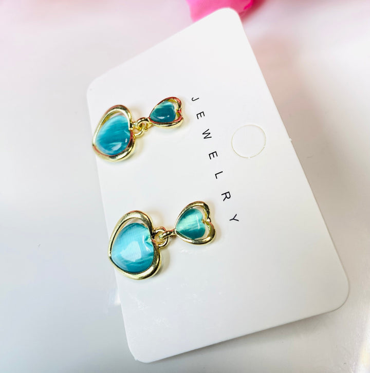 Korean style gold plated blue monalisa stone drop earrings