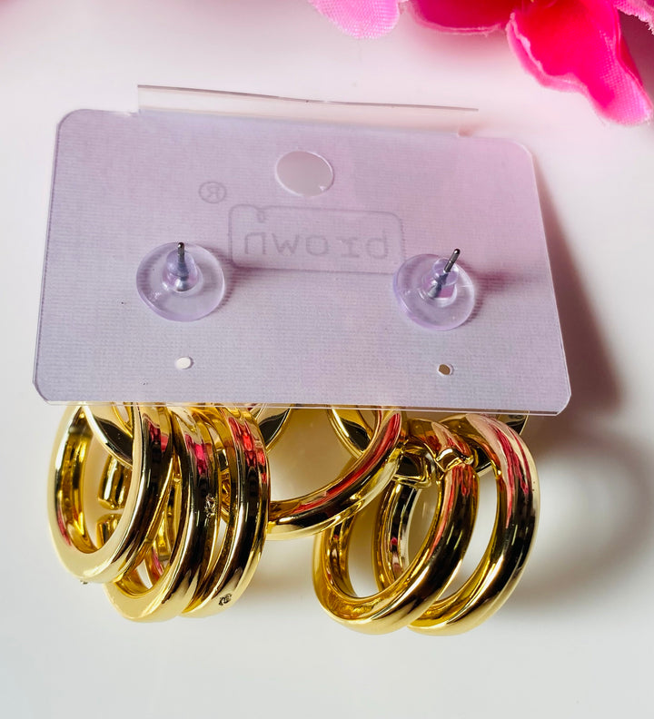 Korean style Gold plated multiple rings earrings