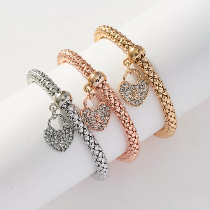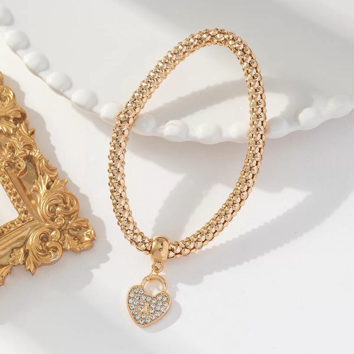Korean style heart shape rhinestones charm with alloy plated bracelet for women's