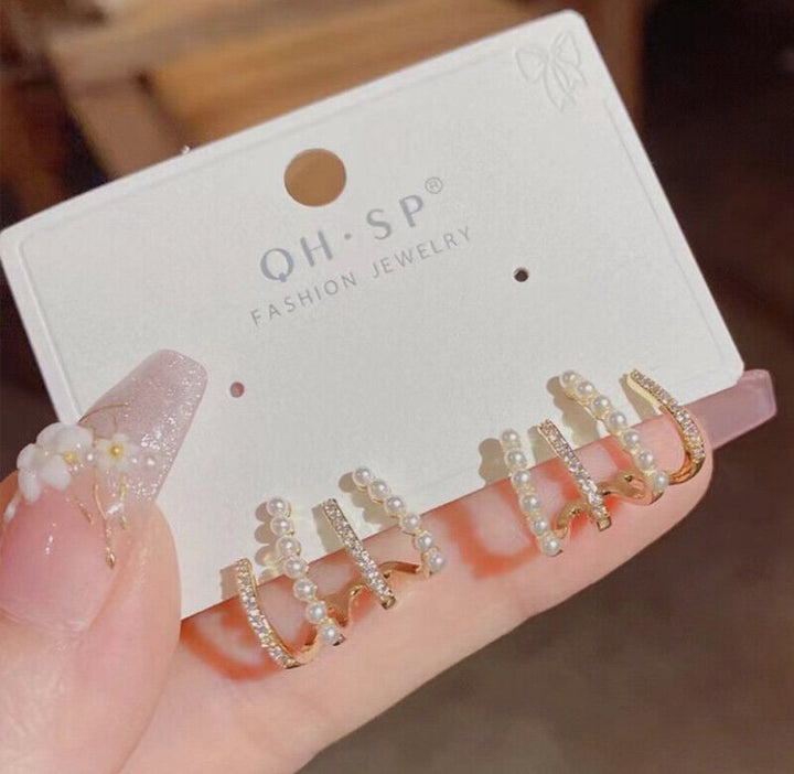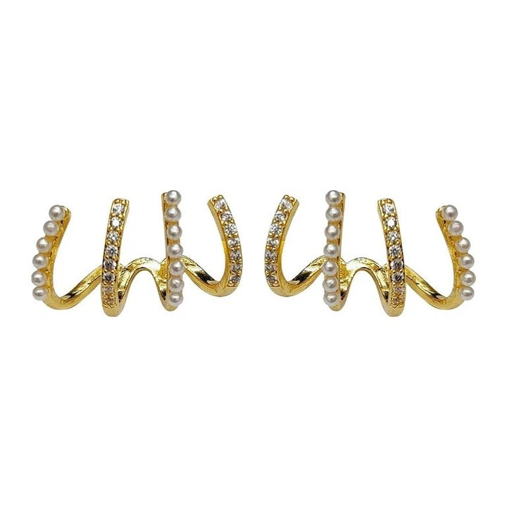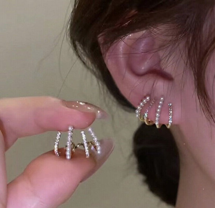 Korean vintage style rhinestone with pearl gold plating alloy earrings