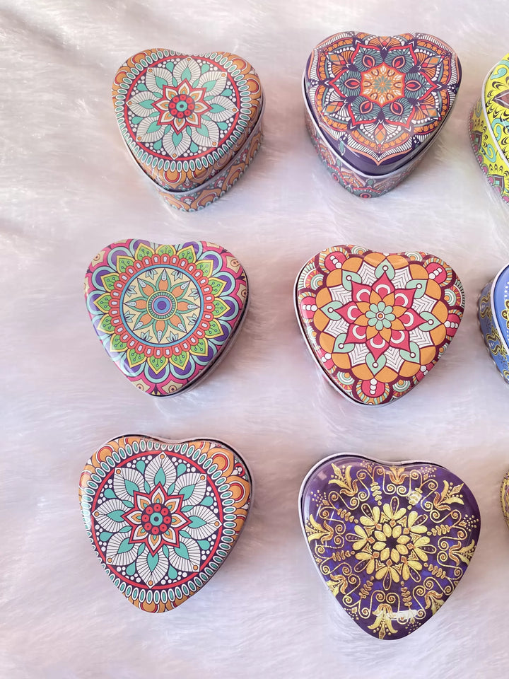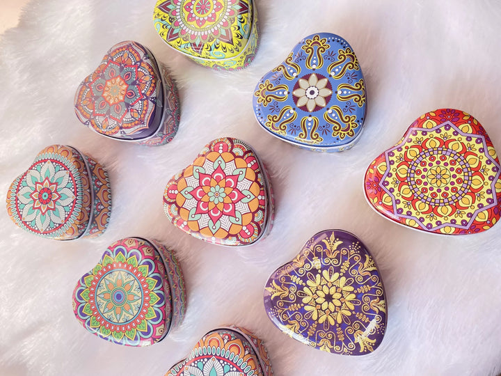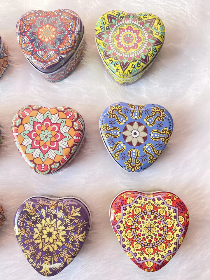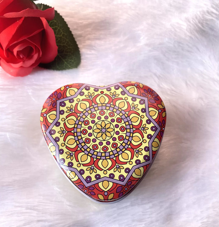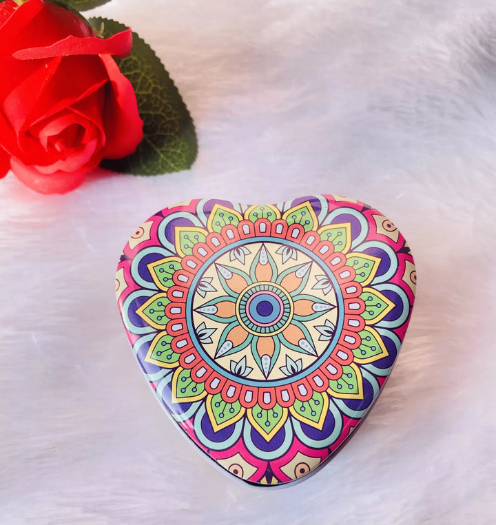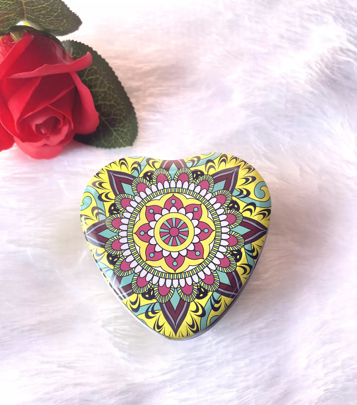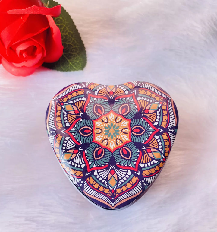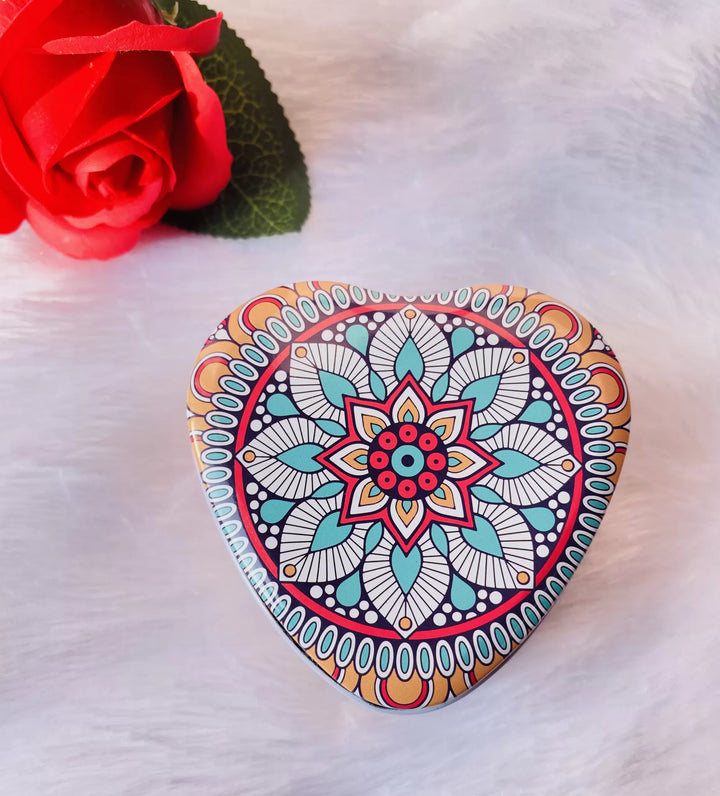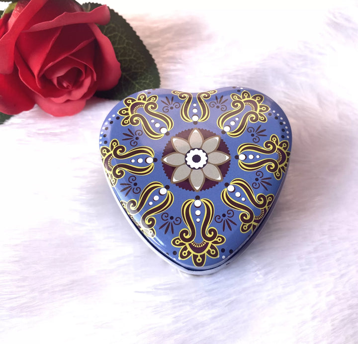 Printed Heart Shaped Jewelry Tin Trinket Box. Multi Purpose Metal Box.