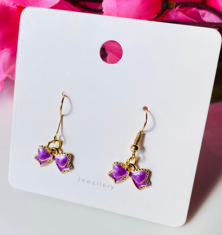 These elegant Purple bow knot hook earrings add a touch of sophistication to any outfit. Made with precision and care, their intricate design exudes a sense of femininity and grace. Crafted with high-quality materials, these earrings are both stylish and durable. Perfect for any occasion, these earrings are a must-have addition to any jewelry collection.