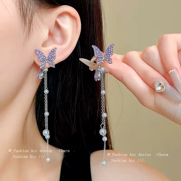 Enhance your outfit with our Purple Butterfly 2 in 1 tassel earrings. These unique earrings feature a stunning butterfly design and can be worn as a tassel or as a standalone piece. Elevate your style with this versatile and eye-catching accessory.