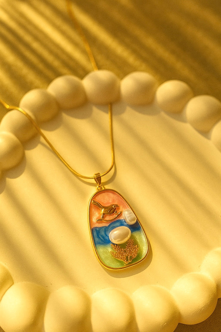Stainless steel bird and pearl necklace
