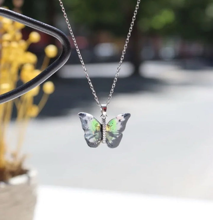 Crafted from durable stainless steel, this black butterfly necklace adds a touch of elegance to any outfit. Featuring a sleek and modern design, this necklace is perfect for everyday wear or special occasions. Its versatile style makes it a must-have accessory for any jewelry collection.
