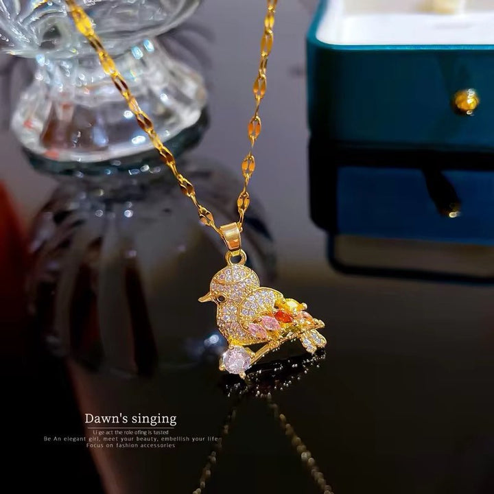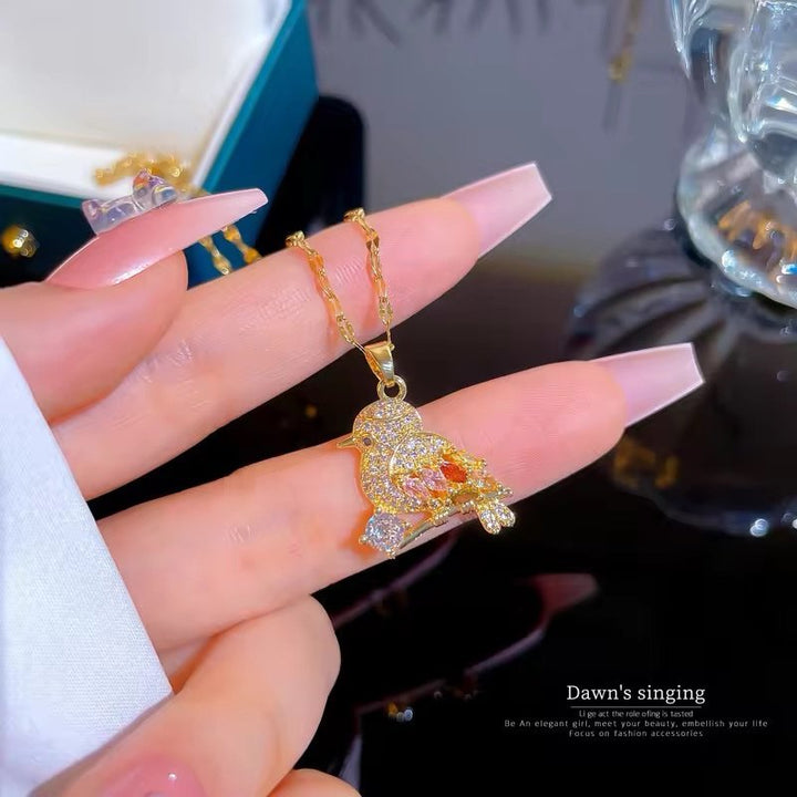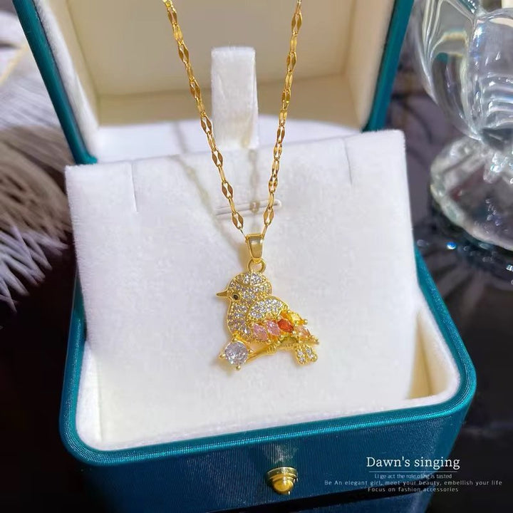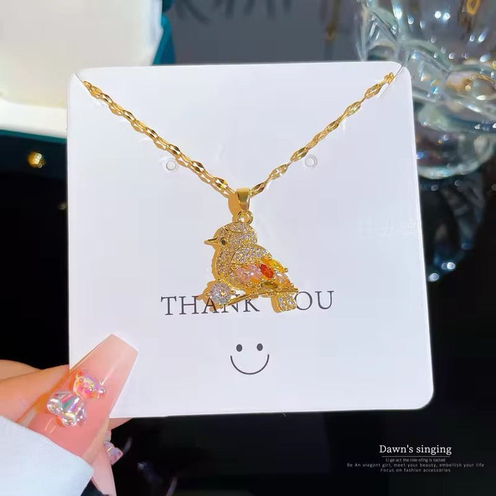 Crafted from high-quality stainless steel, this cute bird necklace is both stylish and durable. Its unique design adds a touch of fun to any outfit, while the sturdy material ensures long-lasting wear. A must-have accessory for any fashion-forward individual.