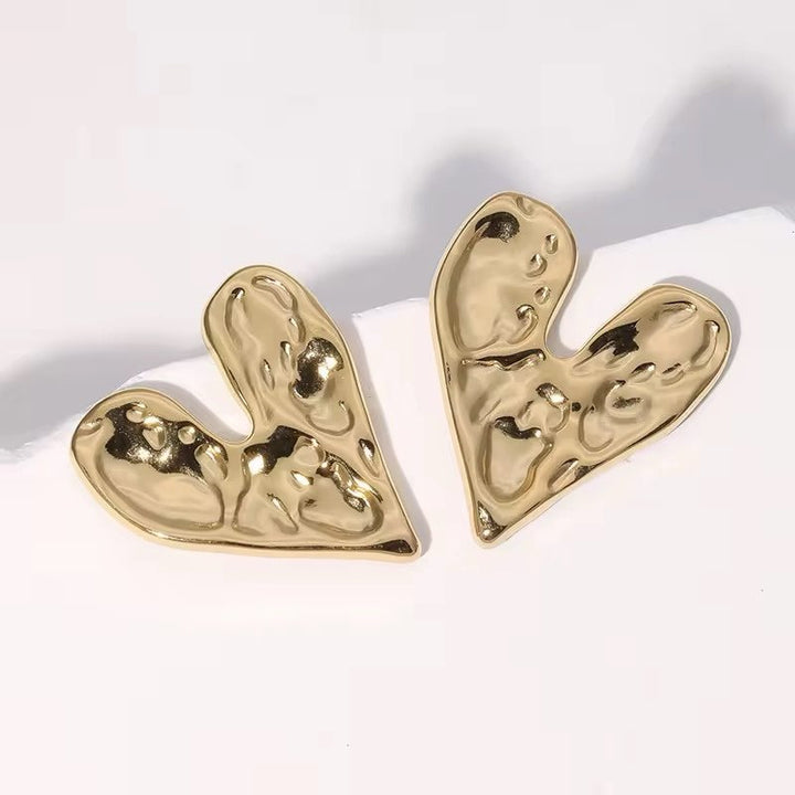 Crafted with high-quality stainless steel, these irregular heart shaped stud earrings are a perfect addition to any jewelry collection. The durable material ensures long-lasting wear while the unique design adds a touch of elegance to any outfit. Upgrade your style game with these beautifully crafted earrings.