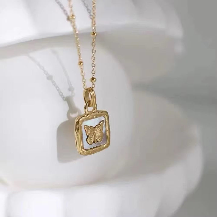This stainless steel square shell Butterfly necklace is a stunning piece of jewelry that combines durability and elegance. Crafted with high-quality stainless steel, this necklace is designed to withstand daily wear and maintain its shine. The square shell pendant features a delicate butterfly motif, adding a touch of sophistication to any outfit. Elevate your style with this timeless accessory.