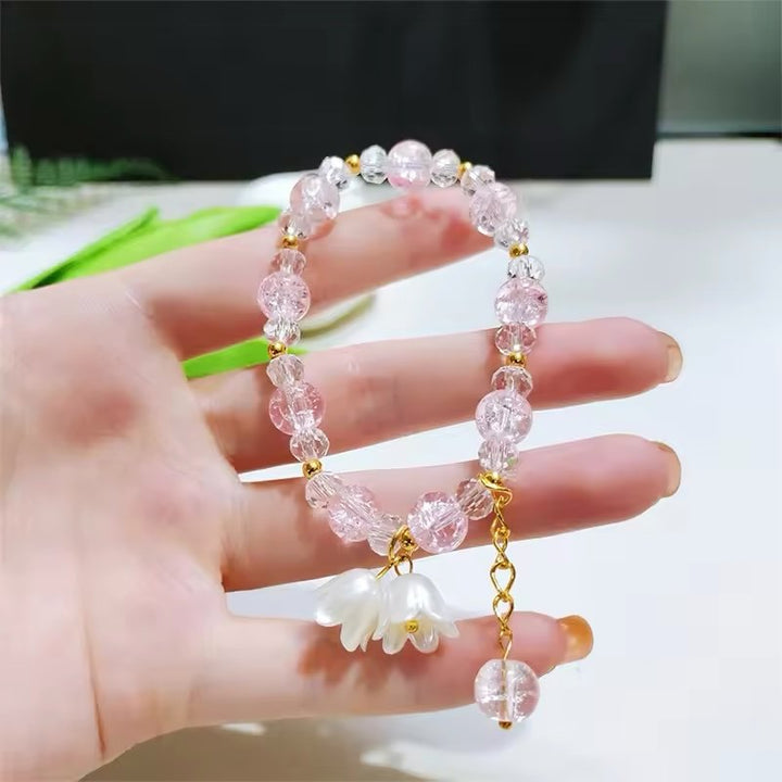 This elegant Tulip pink crystal beads bracelet adds a touch of sophistication to any outfit. Crafted with stunning pink crystals, its delicate design is perfect for both special occasions and everyday wear. Elevate your style with this beautifully crafted bracelet.