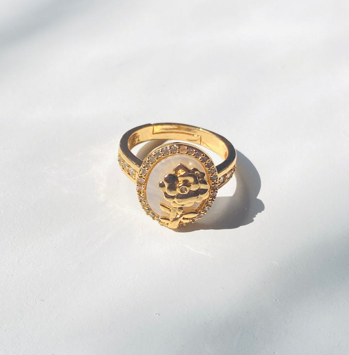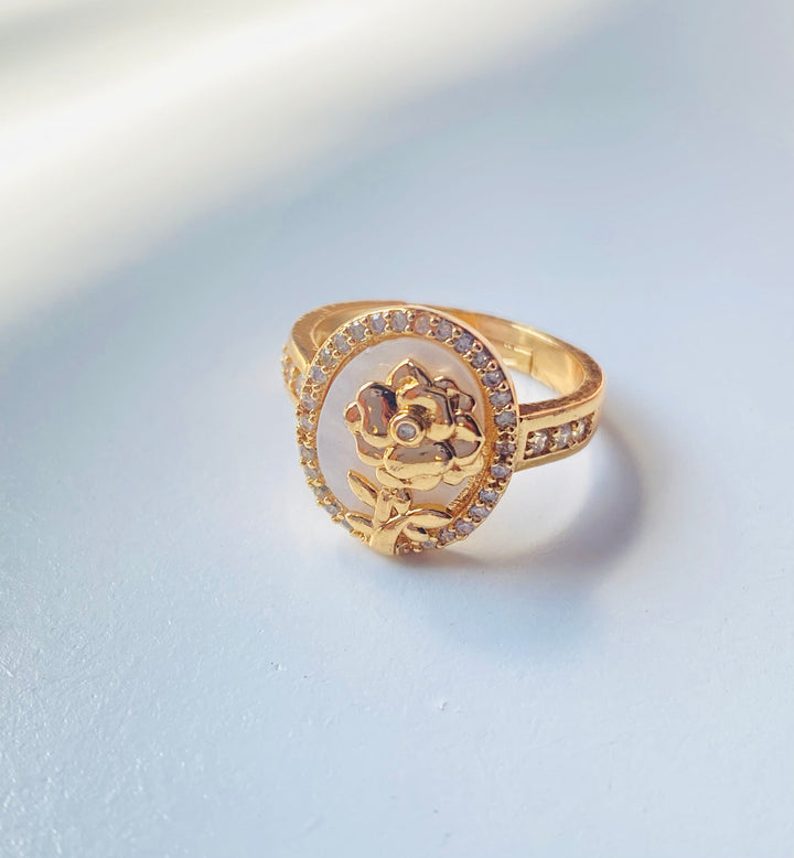 This vintage white rose adjustable ring is a timeless and versatile piece that adds a classic touch to any outfit. Crafted with an elegant white rose design, this ring is sure to catch everyone's eye. The adjustable feature allows for a perfect fit, making it comfortable to wear all day. A must-have for any accessory collection.