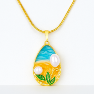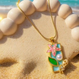 Vintage Stainless Steel Flower Pearl Necklace Earrings