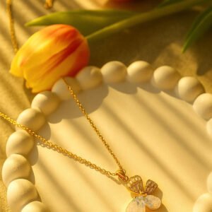 Stainless Steel Crystal Butterfly Necklace Earrings